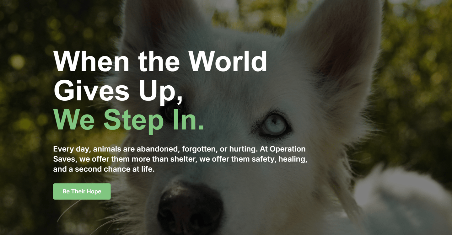 Promotional b-roll captured for website development footage for Operation Saves, a non-profit animal rescue shelter.